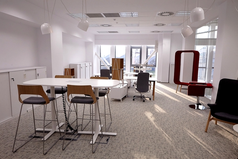 Noul birou este un open space cu suprafete vitrate mari si spatii generoase, unde lumina naturala pune in valoare mobilierul in stil minimalist, nordic. Liniile simple ale mobilierului urmaresc tendintele contemporane de amenajari interioare, in timp ce accentele rosii respecta branding-ul companiei. Este un interior care a fost gandit astfel incat sa puna accentul si pe colaborarea dintre colegi: prin suprafetele deschise si prin locurile de intalnire formale si informale.