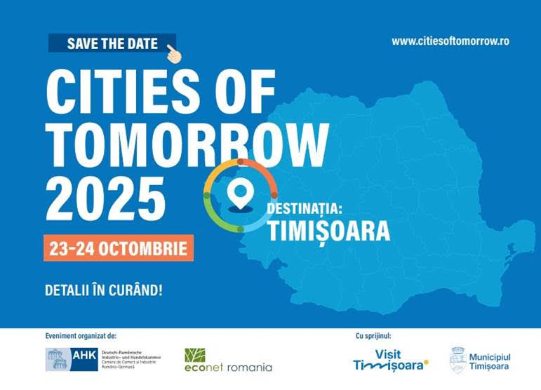Evenimentul de referinta al AHK Romania, dedicat dezvoltarii durabile a oraselor din Romania – Cities of Tomorrow - continua in 2025 turul tarii, la Timisoara