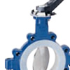 Robinet de inchidere cu clapa fluture centrica tip KE Elastomer / KE Plastomer, corp disponibil in urmatoarele variante constructive: inelar, lug, cu flanse, avand manseta si clapa captusita cu elastomer / plastomer, materiale corelate cu mediul de lucru vehiculat, disponibil in gama de presiuni PN 10 si gama de dimensiuni DN 40 - 600. Aceste robinete pot fi actionate manual, pneumatic, electric, hidraulic.