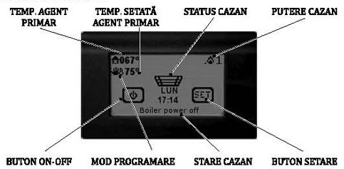Aprindere / Pornire / Oprire cazan complet automatizate - panoul cazanului comanda pompa de circulatie (externa, nu e inclusa in furnitura) si permite conectarea unui termostat de ambianta.