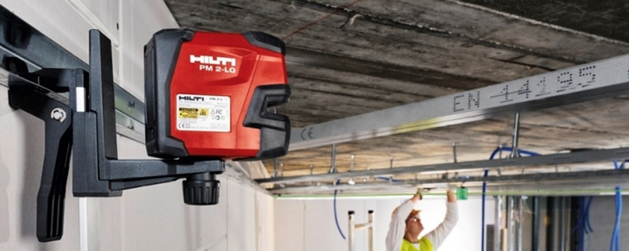 Noul laser liniar Hilti PM 2-LG foloseste raza laser verde pentru a beneficia de vizibilitate maxima si linii fine pe distante de pana la 20 de metri.