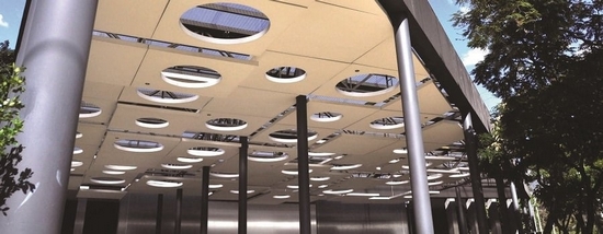 Plafoanele suspendate amplasate la exteriorul si interiorul cladirilor se pot construi cu Cementex de 8 mm. Printre avantajele suplimentare ale acestei placi se enumera posibilitatea de curbare, raza minima fiind de 8 m.