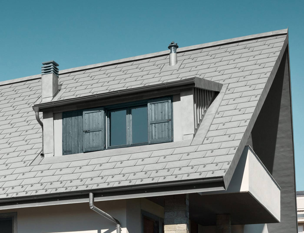 Placi metalice romboidale PREFA 44x44 cm pentru acoperisuri si fatade imbina caracteristicile si beneficiile dovedite a produselor PREFA, privind pana si cele mai mici detalii prin inovatiile estetice inspirante. Datorita placilor romboidale de dimensiuni mari cu ajutorul carora se realizeaza acoperisurile metalice cu forma romboidala traditionala, rezulta acoperisuri cu design admirabil, elegant si modern, ce nu necesita intretinere. Sistemul este in perfecta armonie si din punct de vedere estetic, astfel reda echilibru cladirii. Datorita tehnicii de acoperire falt in falt (dublu falt), placile pot fi montate intr-o perioada scurta de timp, astfel intregul sistem de acoperis PREFA necesita costuri reduse de montare.