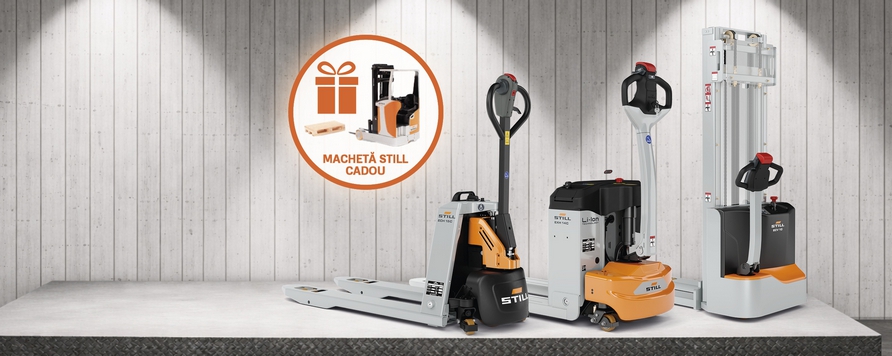 Alege oricare dintre modelele selectate din promotie – EXH 14C, ECH 15C, ECH 12C, ECV 10C, ECV 10, ECV 10iC – si primesti o macheta de stivuitor STILL cadou, numai buna de pus pe birou sau in colectie.
