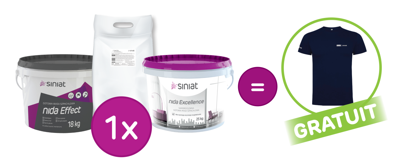 - Primesti GRATUIT 1 tricou la achizitia a cel putin 1 galeata/sac din gleturile gata preparate Finntex 25 kg, nida Effect 18 kg si nida Excellence 25 kg, indiferent de combinatie
