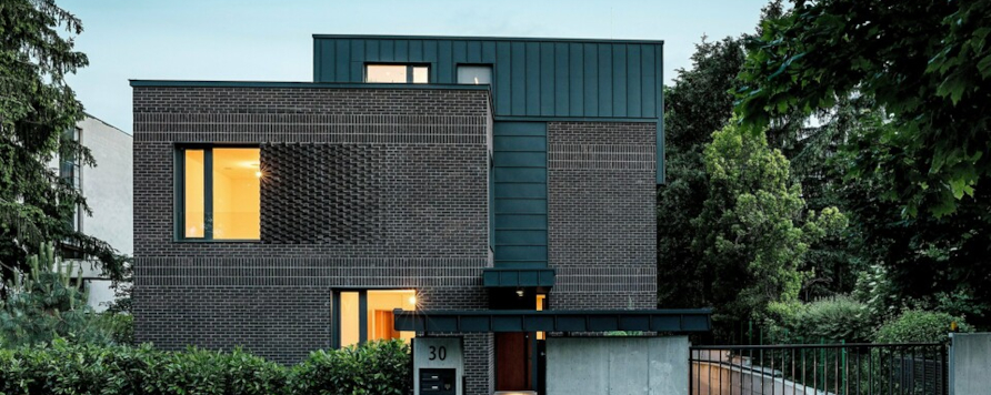 Aceasta casa multigenerationala cu acoperis plat, de culoare antracit P.10, acoperita cu placi PREFALZ, a fost construita in districtul XII al orasului Budapesta, unde utilizarea materialelor, organizarea spatiului si integrarea in mediul inconjurator au jucat un rol important.