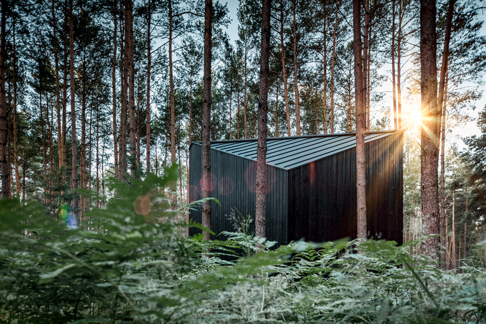 Marktl/Wasungen – For generations, families have owned small weekend houses in a pine forest near the village of Kolonia Karcmy (PL). Some have been lovingly cared for and maintained, or also modernized. Rafał Stramski took an opportunity to buy a previously undeveloped parcel and constructed the “Boroteka” for family and guests – a small refuge with a striking PREFA roof.