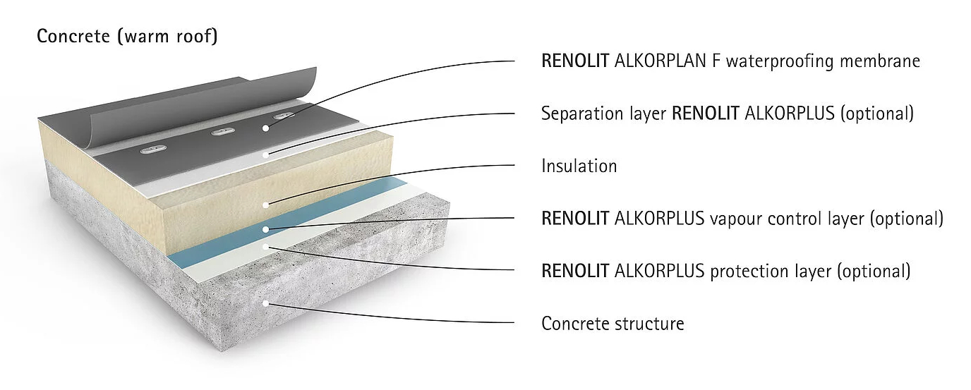RENOLIT ALKORTEC este o membrana sintetica pentru acoperisuri, de inalta calitate, pe baza de EVA/EBA. Datorita proprietatilor sale unice, specifice produsului, RENOLIT ALKORTEC este deosebit de potrivit pentru proiectele de constructii noi si de renovare pentru care calitatea si longevitatea sunt primordiale. Beneficiile membranei: rezistent la bitum; instalare rapida si usoara; cusaturi sudate omogene; permeabil la vapori; rezistenta chimica ridicata.