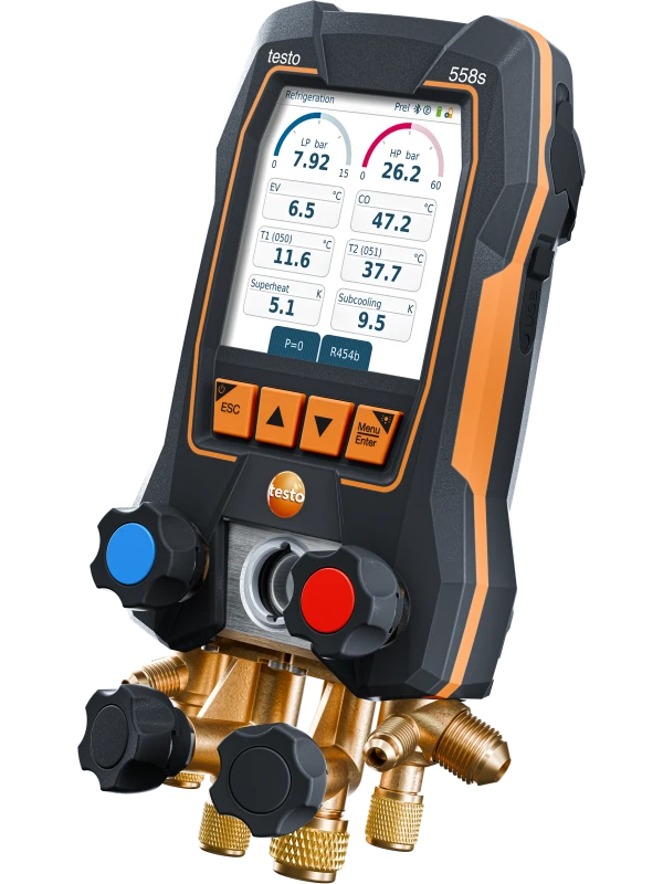 Termometrul inteligent tip cleste testo 115i cu Bluetooth si aplicatie pentru mobil in combinatie cu un smartphone sau tableta este potrivit pentru pentru instalarea, reglarea si mentenanta sistemelor de aer conditionat si refrigerare. Instrumentul mai poate fi utilizat pentru a masura temperaturile de tur si retur. Potrivit pentru service si detectarea erorilor la aerul conditionat si sistemele de refrigerare, precum si pentru instalarea acestora. Instrumentul de masurare mai poate fi utilizat pentru a masura turul si returul temperaturilor. Masoara temperaturile de tur si retur. Determina cu usurinta parametri esentiali ai unui sistem de refrigerare, cum ar fi supraincalzirea, subracirea sau presiunea